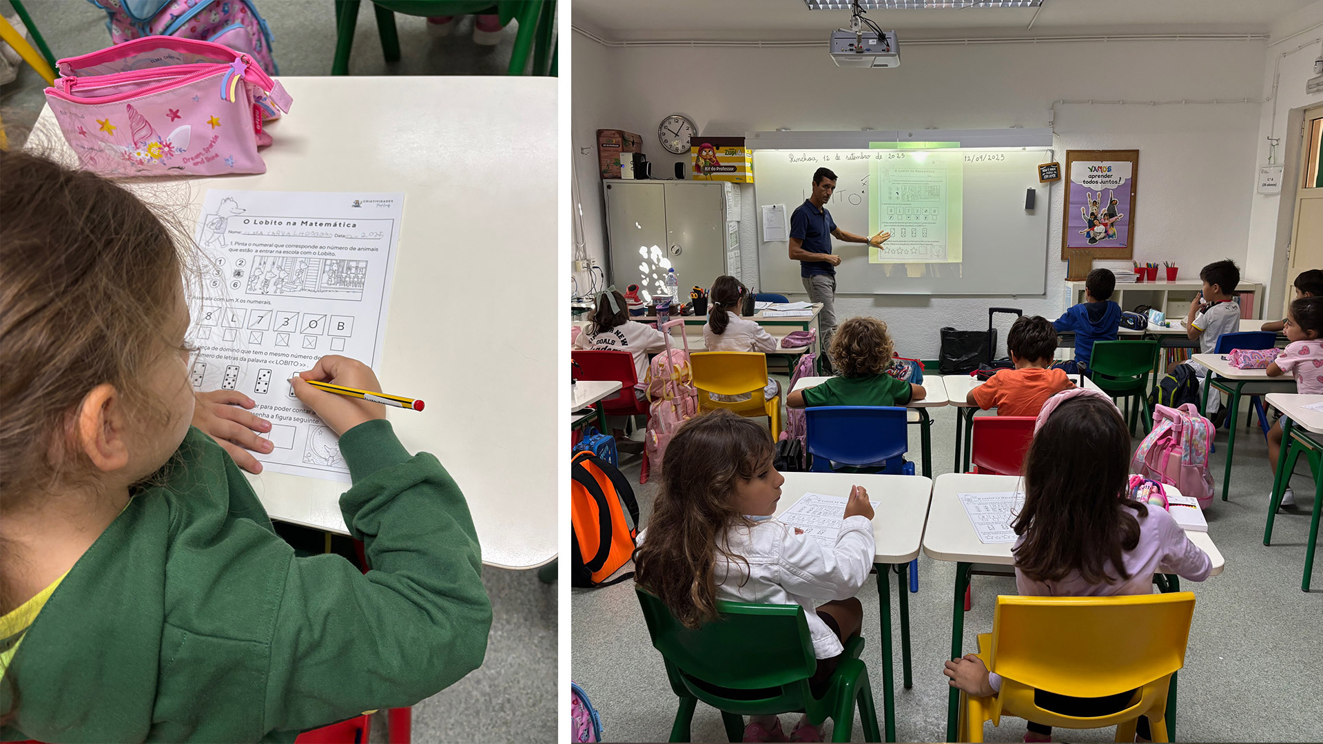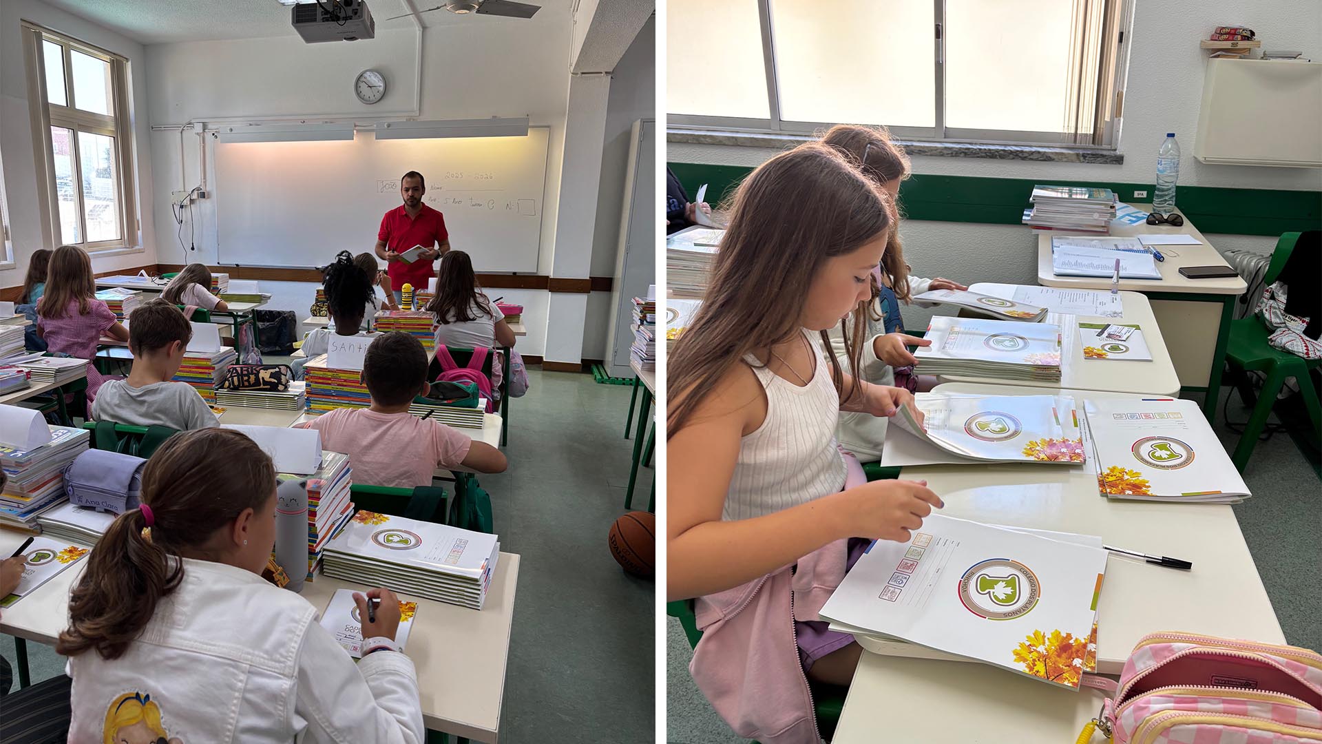 Entre sorrisos e reencontros, o primeiro dia ficou também marcado pela entrega dos livros escolares, que foram identificados e preparados para o novo ano letivo.