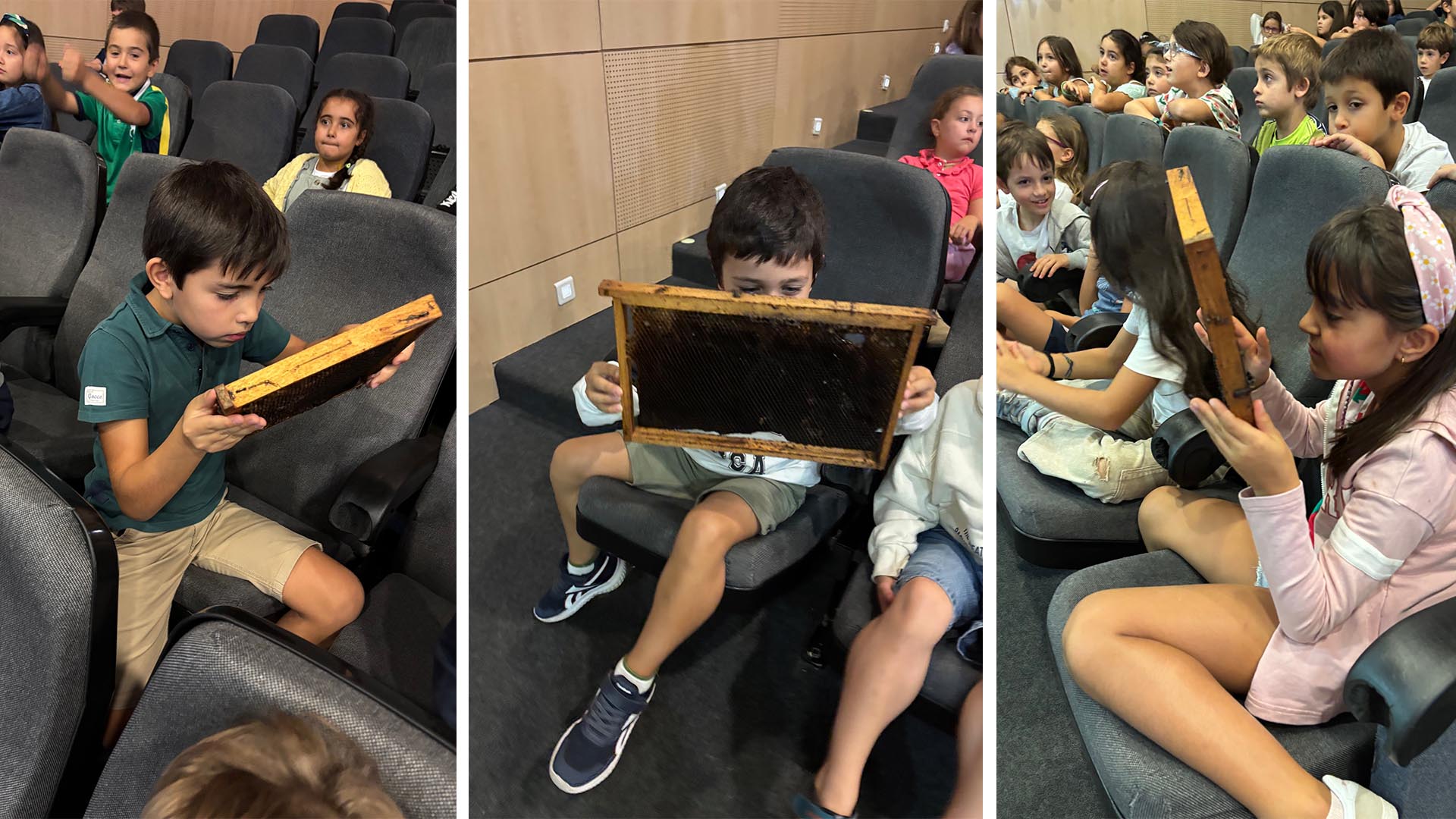 Durante a sessão, os alunos descobriram o ciclo de vida das abelhas, a forma como estas se organizam na colmeia e o trabalho essencial que desenvolvem para o equilíbrio do planeta. Aprenderam também que as abelhas são responsáveis pela polinização de grande parte das plantas e alimentos que consumimos e que enfrentam diversas ameaças, como o uso de pesticidas e a presença de espécies invasoras.