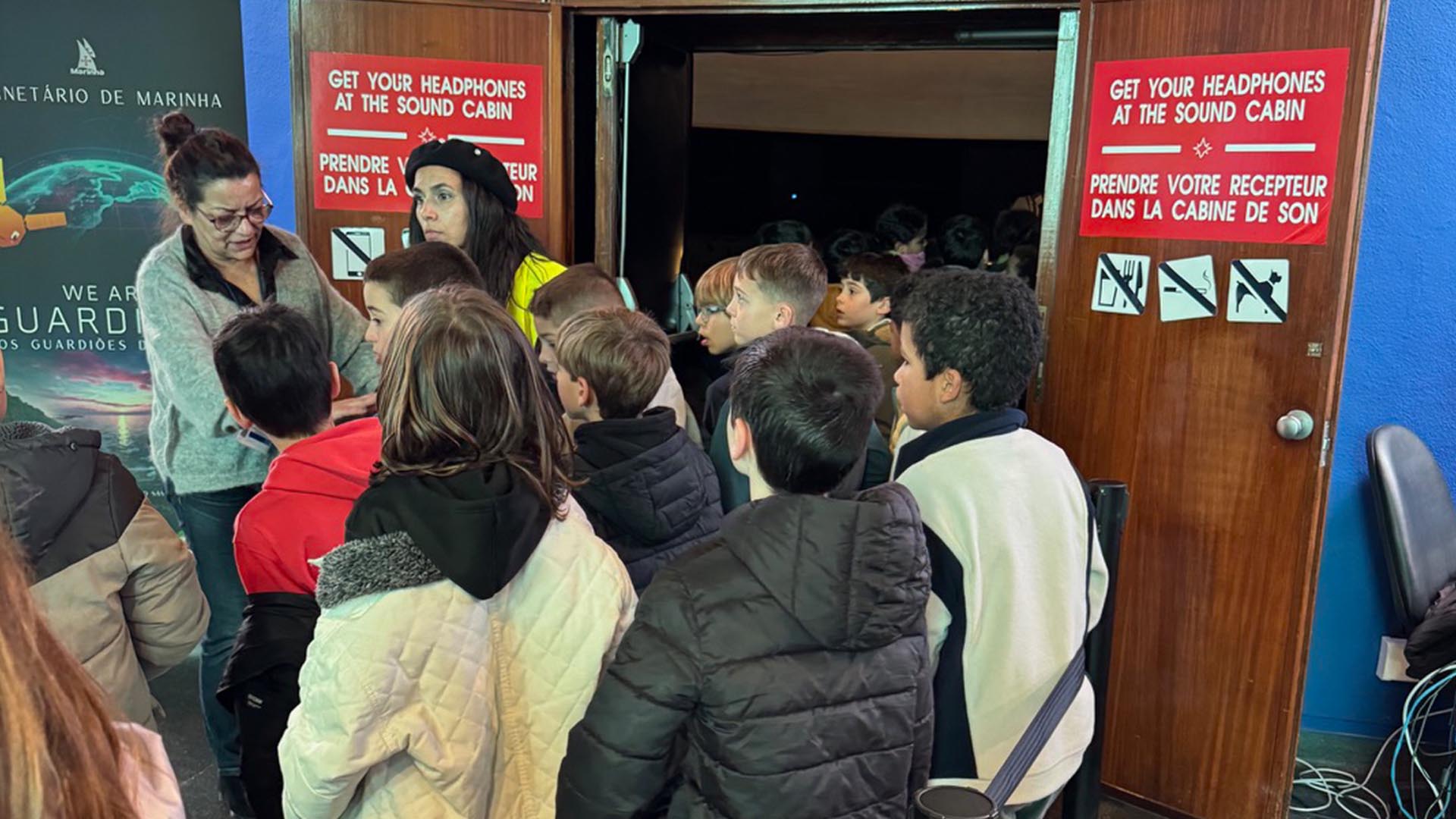 Durante a sessão, os alunos embarcaram numa viagem pelo espaço, descobrindo curiosidades sobre o céu, as estrelas e as constelações, através de uma abordagem envolvente e adaptada à sua faixa etária. A atividade combinou ciência e imaginação, permitindo aos alunos aprender de forma divertida e interativa.