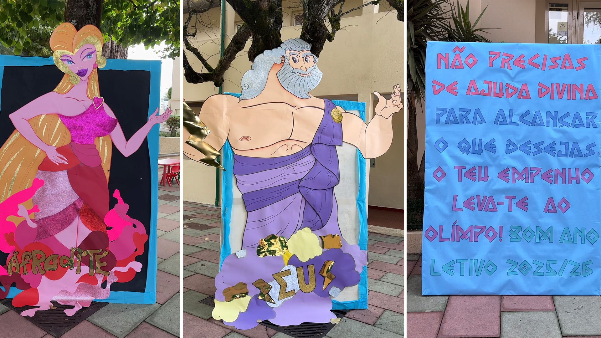 Na sessão de boas-vindas, o Diretor do Colégio deixou uma mensagem de confiança e motivação a toda a comunidade educativa. Este momento foi igualmente especial pela apresentação do novo Diretor Pedagógico, professor Miguel Ferreira, que se dirigiu aos alunos pela primeira vez. O tema escolhido para o arranque deste ano letivo foram os Deuses do Olimpo. Com figuras em grande dimensão, os deuses acolheram os alunos logo à entrada, transmitindo uma mensagem inspiradora: não é da ajuda divina que depende o sucesso, mas sim do esforço e empenho de cada um.
