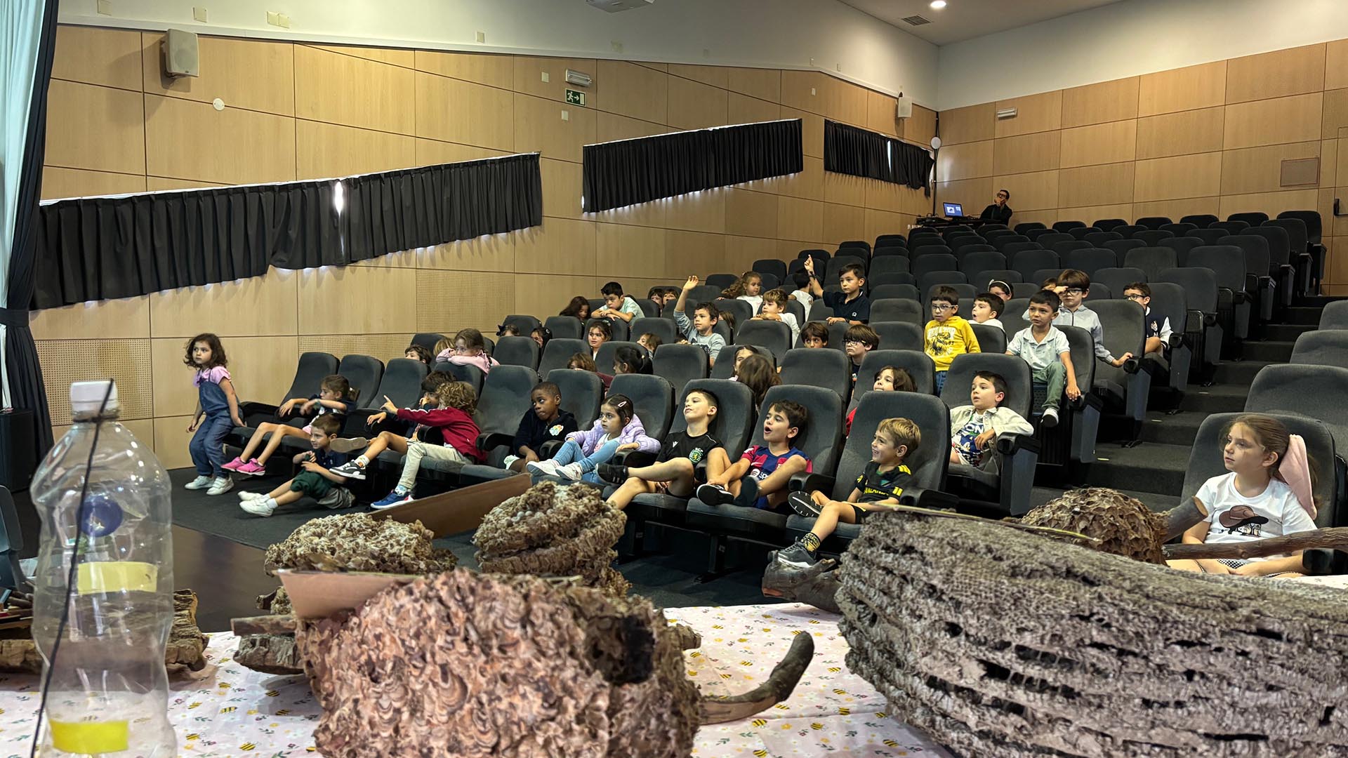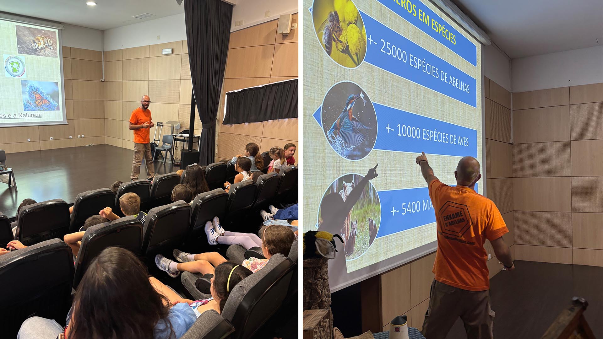 Durante a sessão, os alunos descobriram o ciclo de vida das abelhas, a forma como estas se organizam na colmeia e o trabalho essencial que desenvolvem para o equilíbrio do planeta. Aprenderam também que as abelhas são responsáveis pela polinização de grande parte das plantas e alimentos que consumimos e que enfrentam diversas ameaças, como o uso de pesticidas e a presença de espécies invasoras.