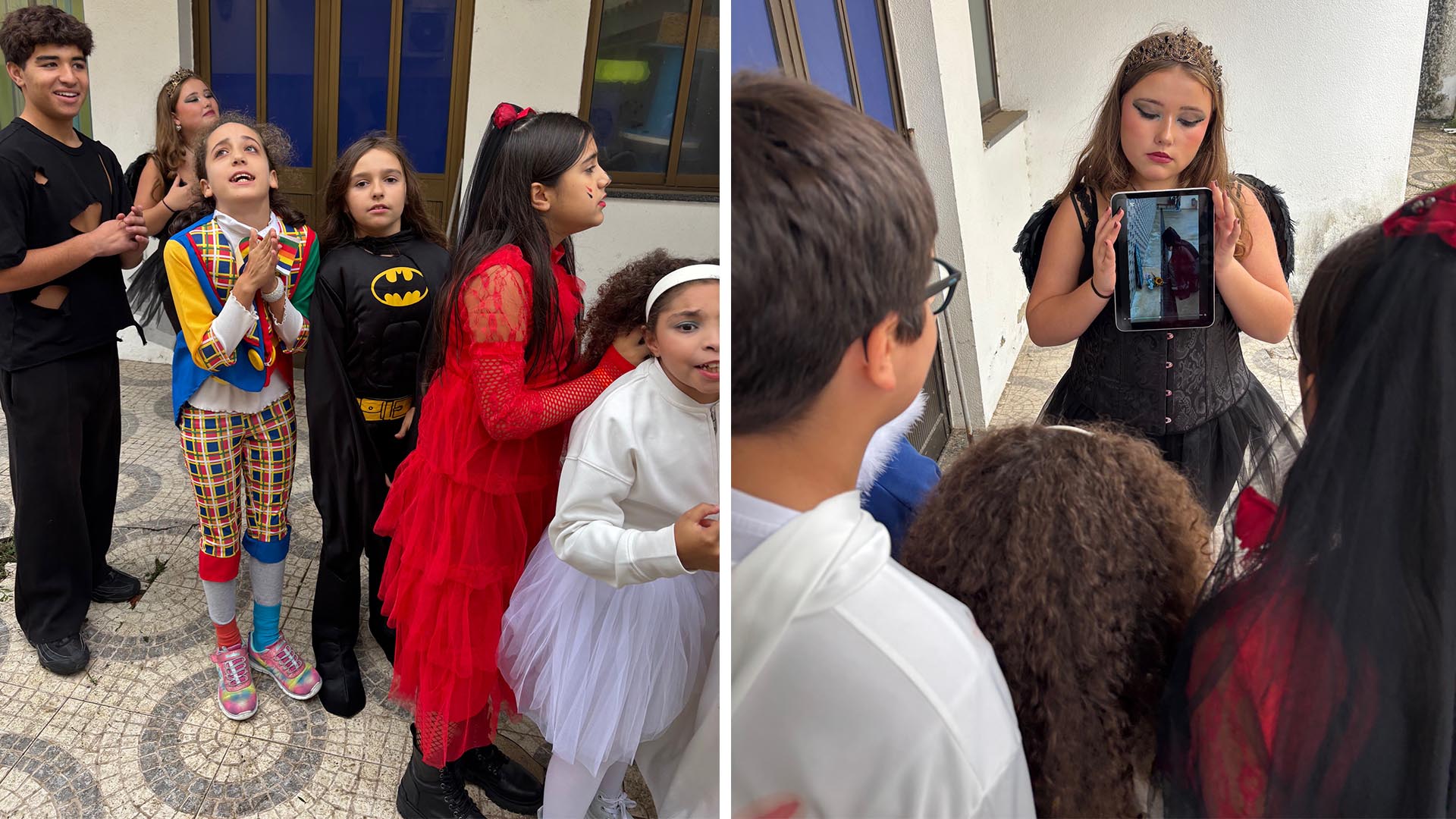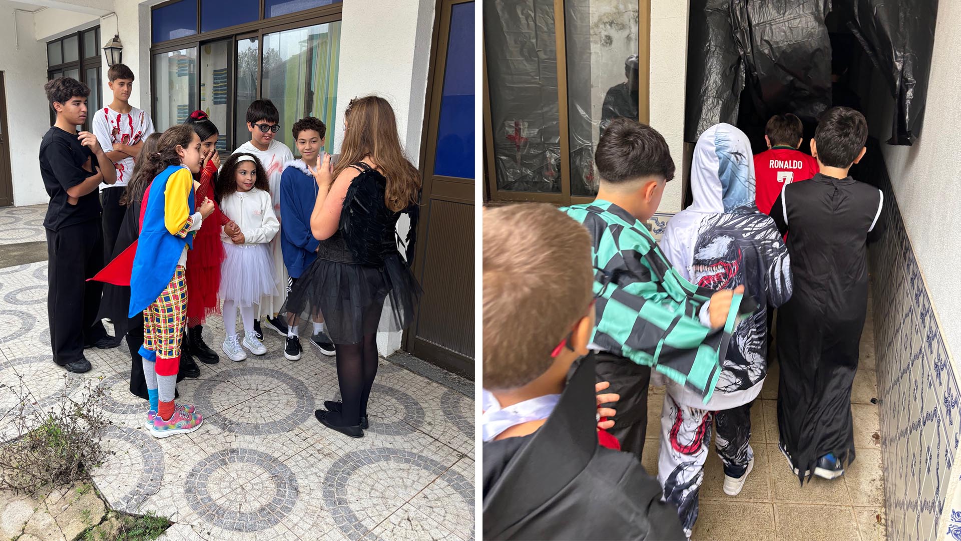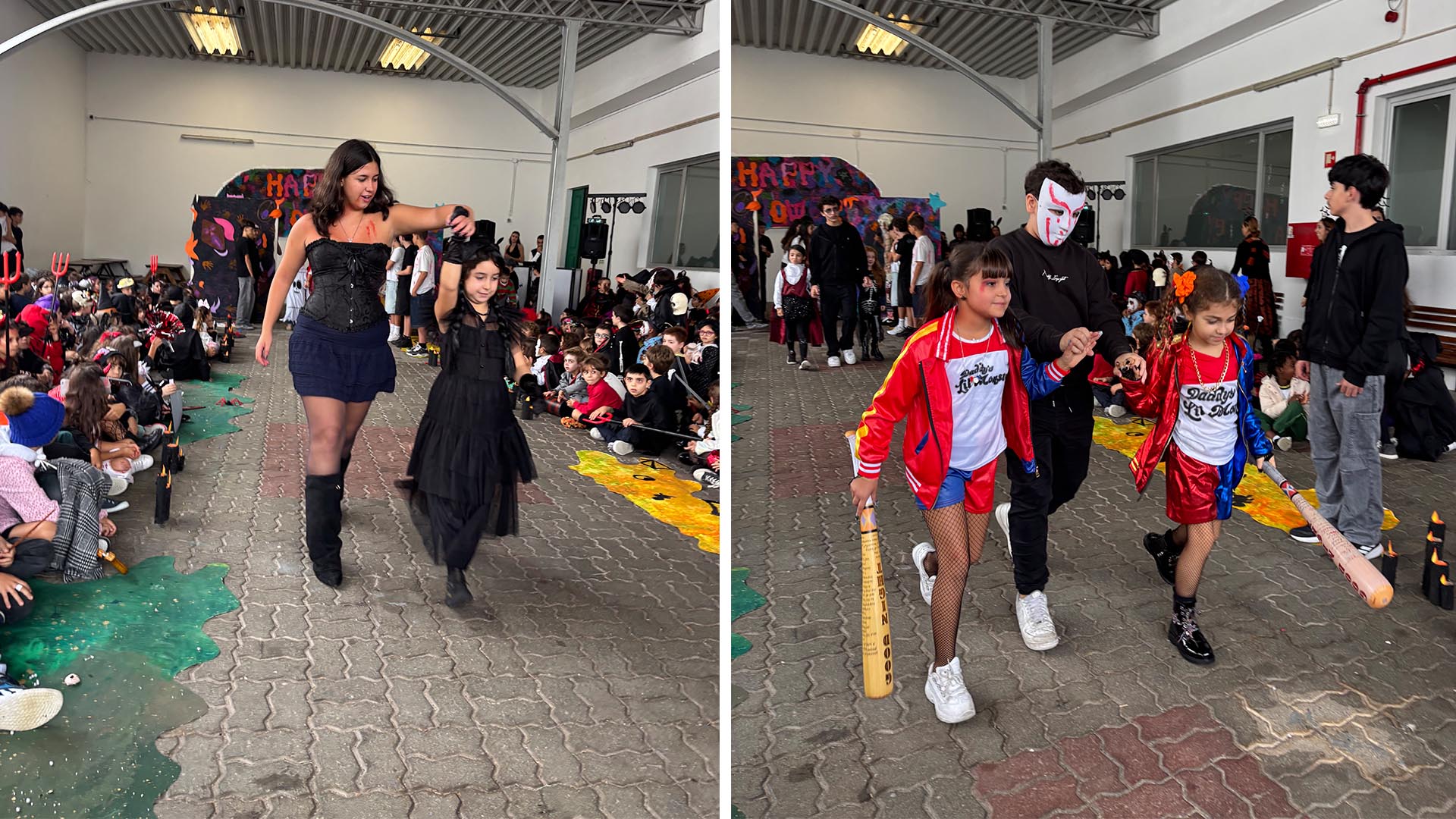 A animação começou logo de manhã, com as brincadeiras dos alunos mascarados das mais variadas personagens: bruxas, vampiros, esqueletos, monstros, super-heróis e outras figuras. A criatividade e o entusiasmo foram uma constante ao longo de todo o dia.