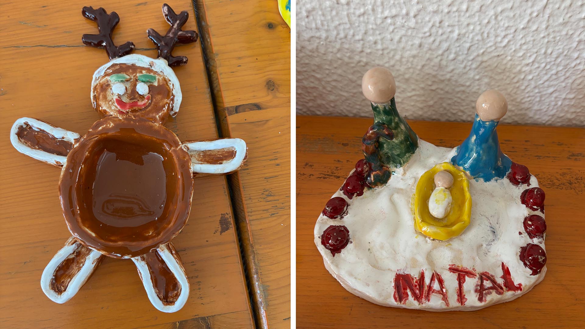 Com muita criatividade, os alunos modelaram diferentes peças, tendo como objetivo decorar a mesa de Natal ou oferecer como presente, valorizando o trabalho manual e a expressão artística. Cada peça refletiu o cuidado, a imaginação e o envolvimento dos alunos ao longo do processo de criação.
