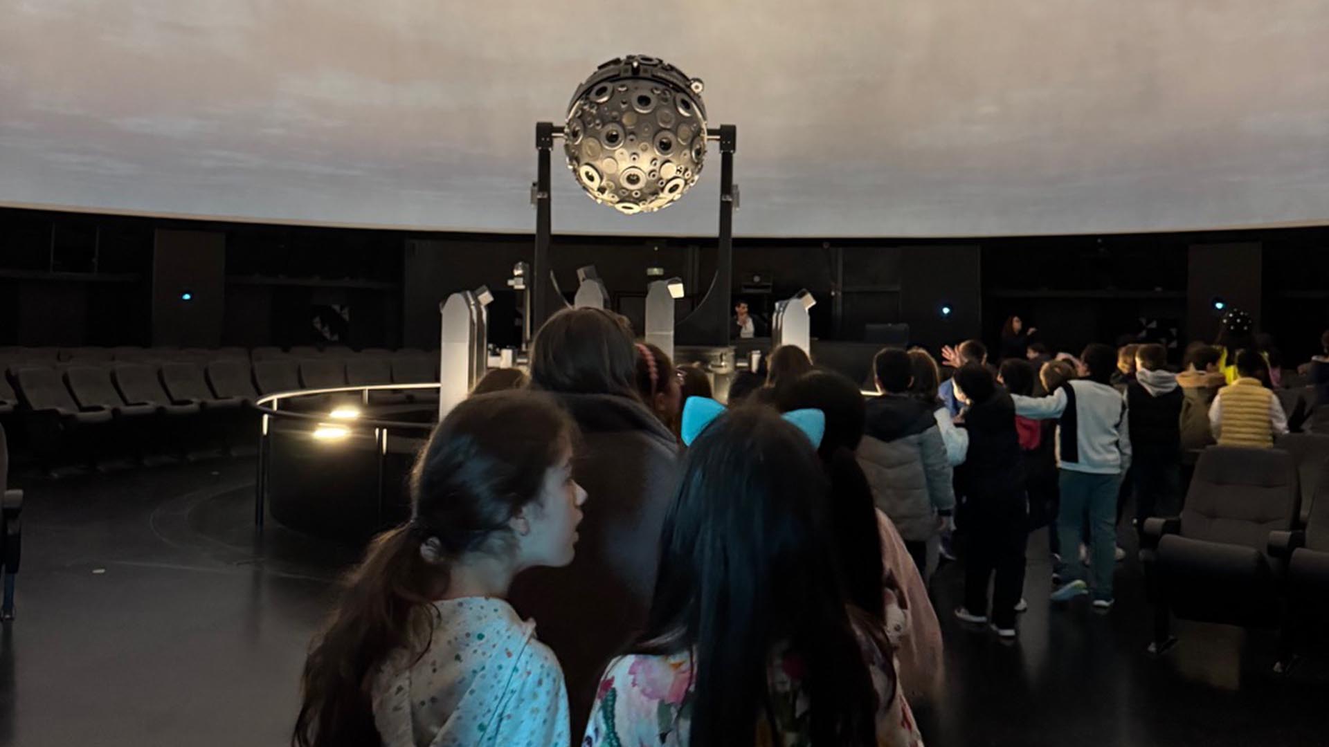 Durante a sessão, os alunos embarcaram numa viagem pelo espaço, descobrindo curiosidades sobre o céu, as estrelas e as constelações, através de uma abordagem envolvente e adaptada à sua faixa etária. A atividade combinou ciência e imaginação, permitindo aos alunos aprender de forma divertida e interativa.